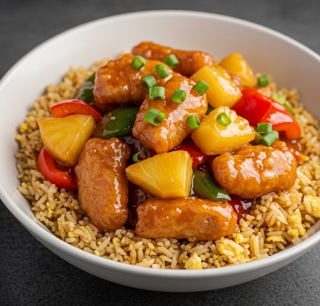 ARROZ CHINO CON POLLO AGRIDULCE.